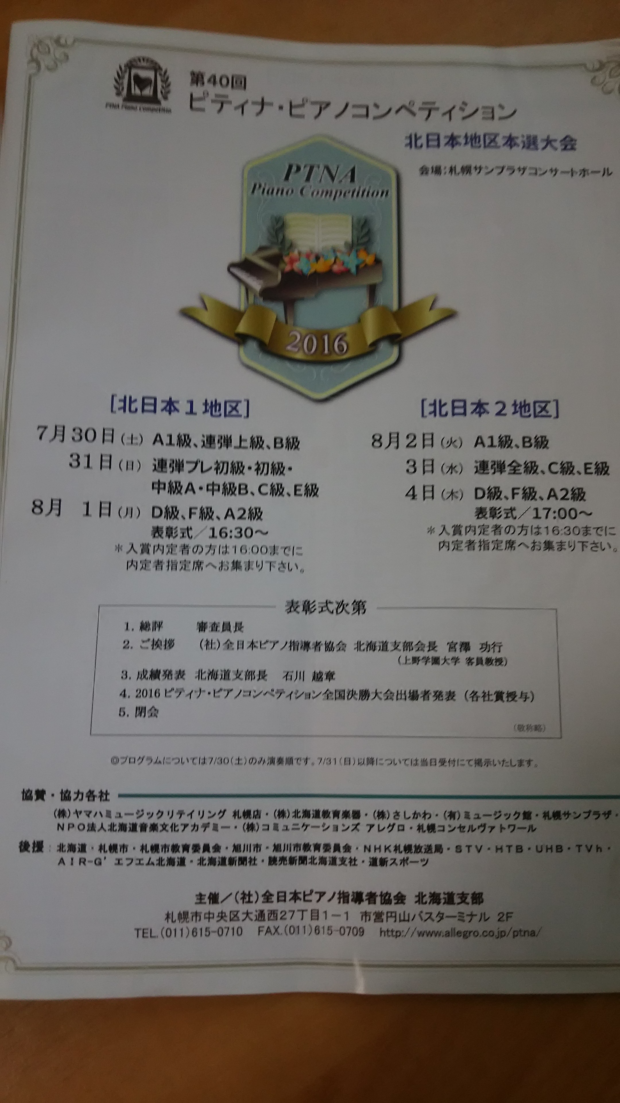 そして札幌サンプラザホールにおいて PTNA北日本大会が8月4日までの毎日開催され、