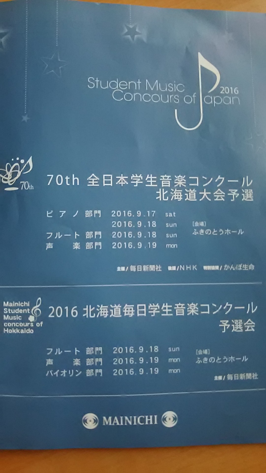 第70回 全日本学生音楽ホール北海道予選大会、2016 北海道毎日学生音楽コンクール予選会が開催され、